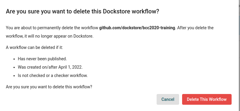 If you do not, your deleted entry may reappear on Dockstore the next time you push to the repo.