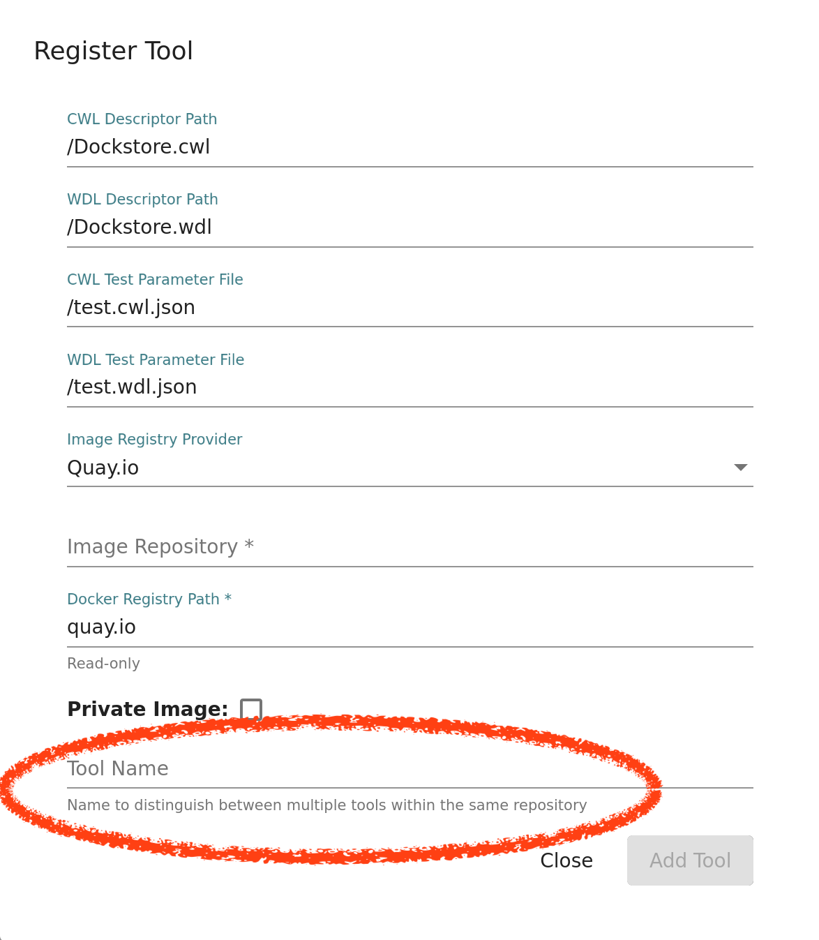 If you registered your tool using the Web UI, you may have filled out the Tool Name field shown in the picture below.